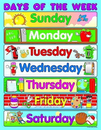 Days of the Week Chart by School Smarts Durable Material Rolled and SEALED in Plastic