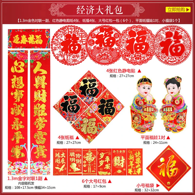 Tahun baru cina Dekorasi set-Musim Semi bait, Surat Fu, Jendela Grille,